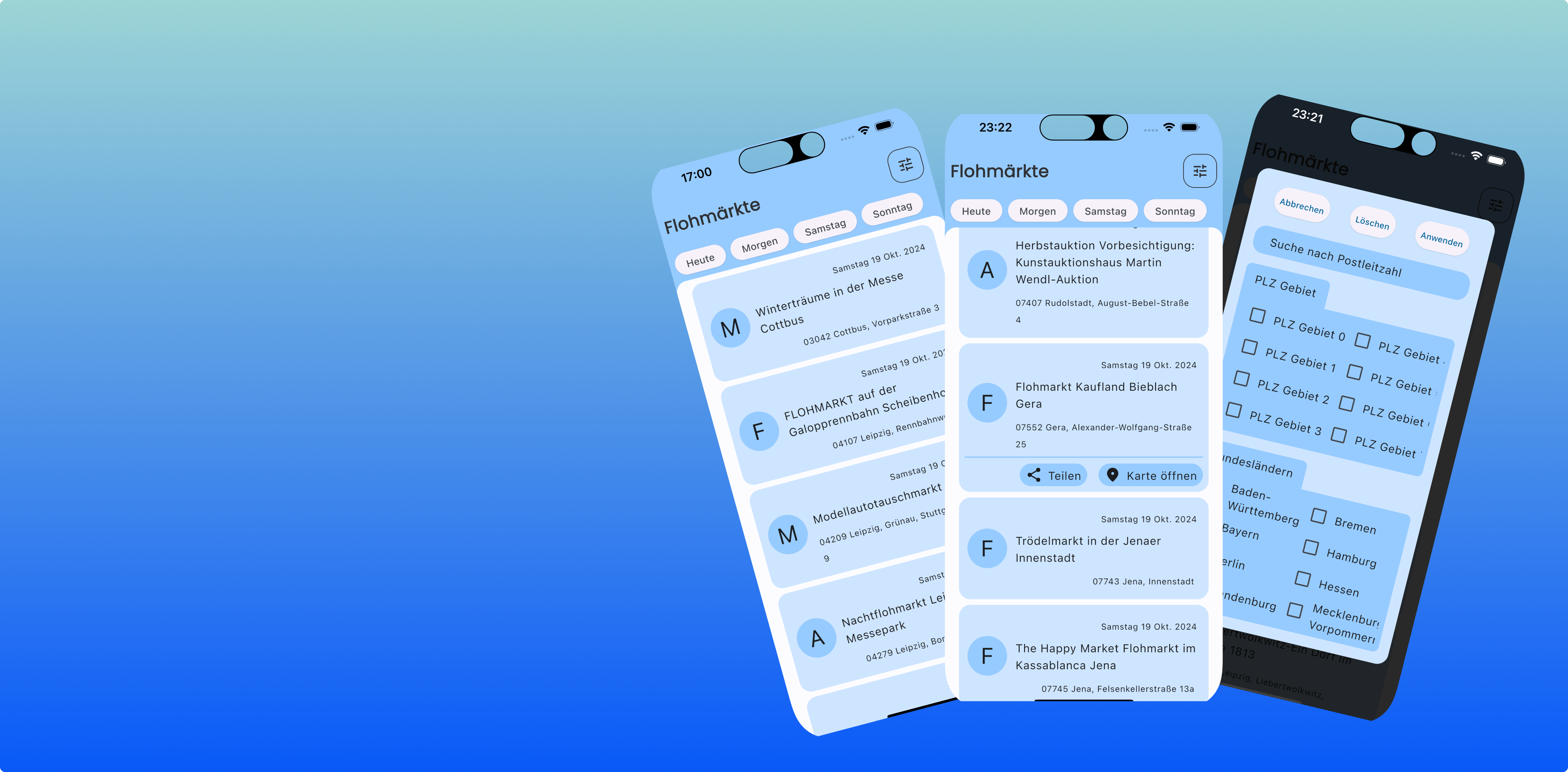 Filterst du einfach nach Datum, PLZ Gebiet, Postleitzahl oder Bundesland.